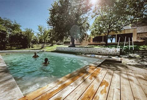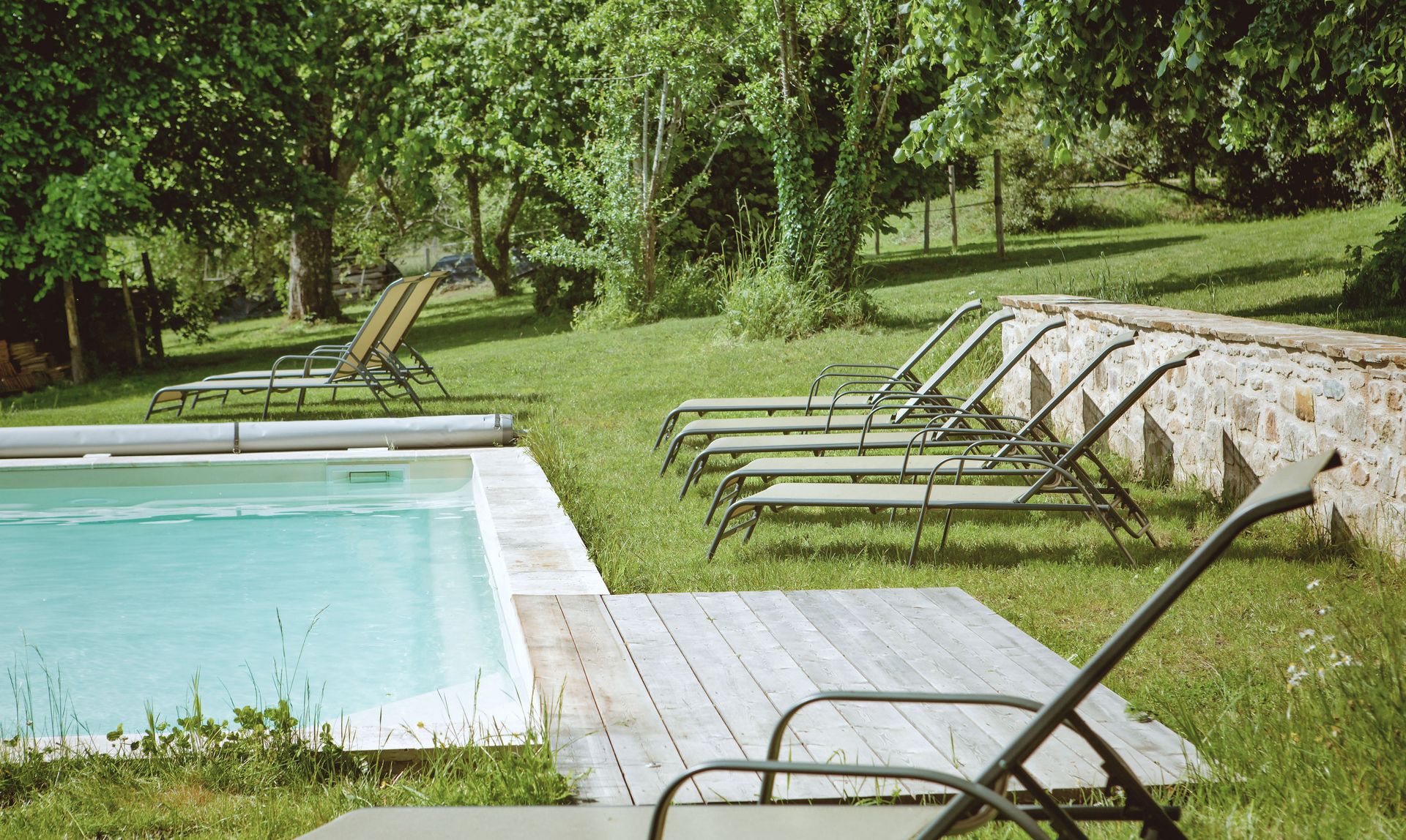 Aux heures chaudes, la piscine prend tout son sens et les hamacs font grincer les branches du noyer et du tilleul.