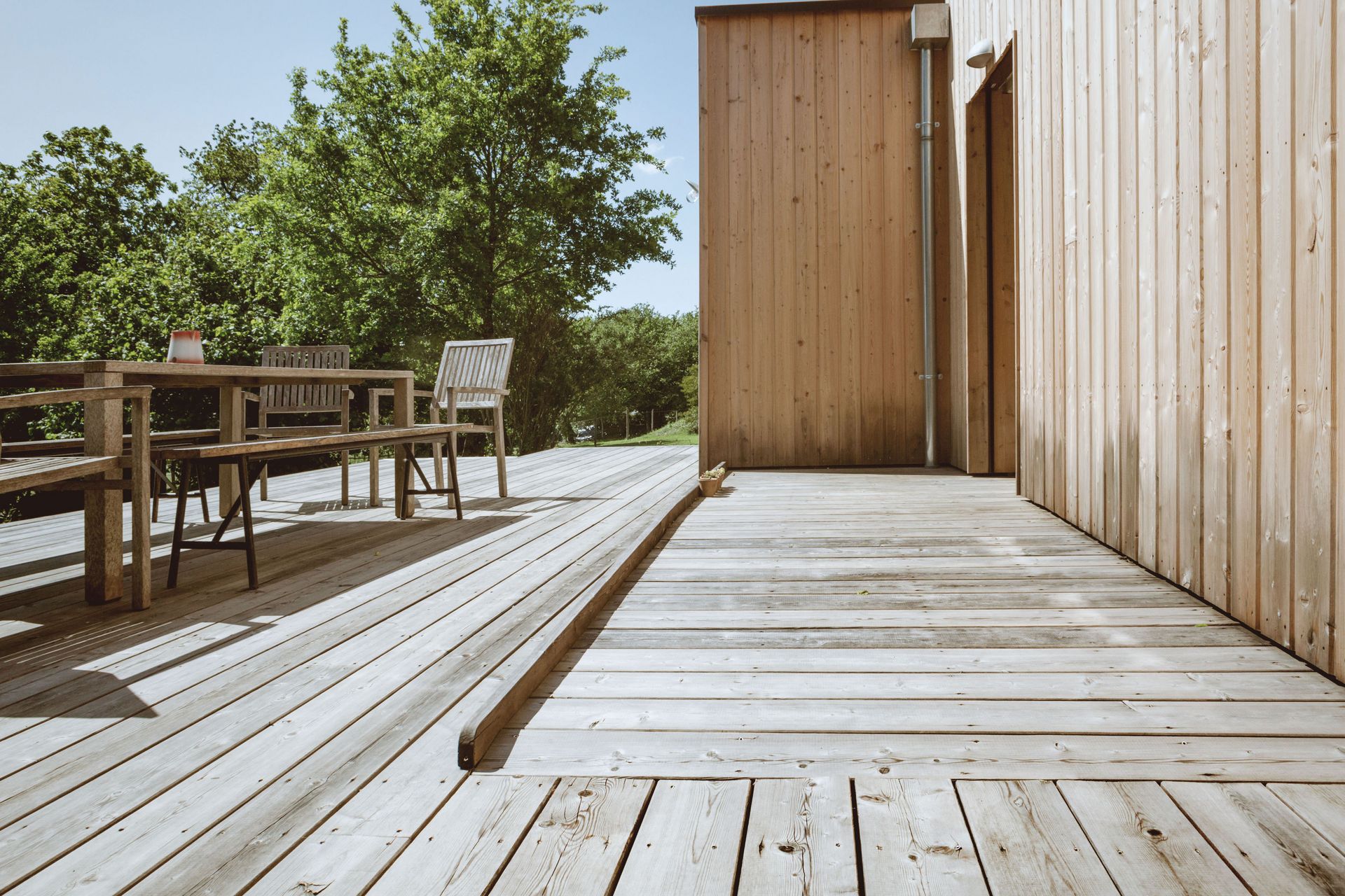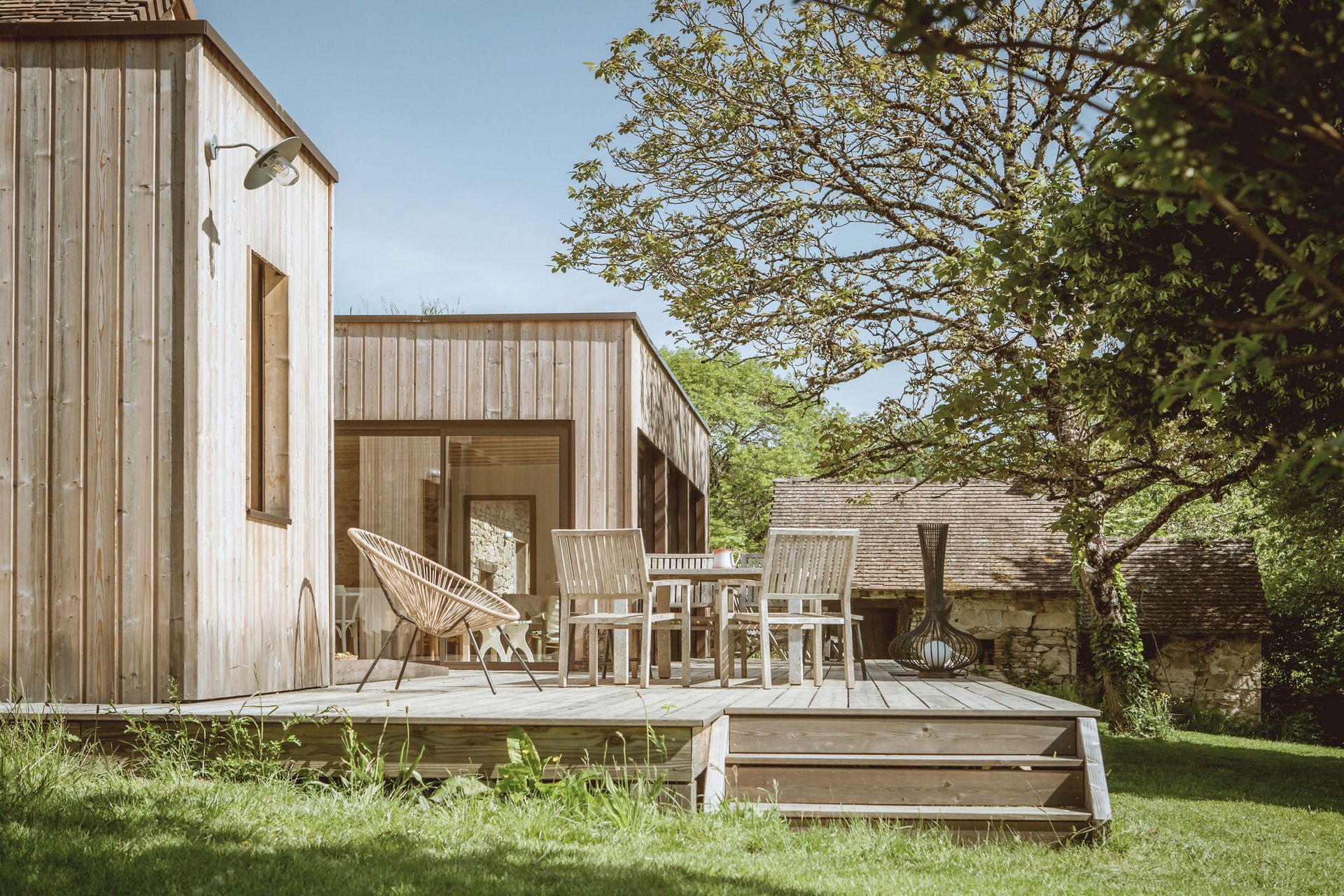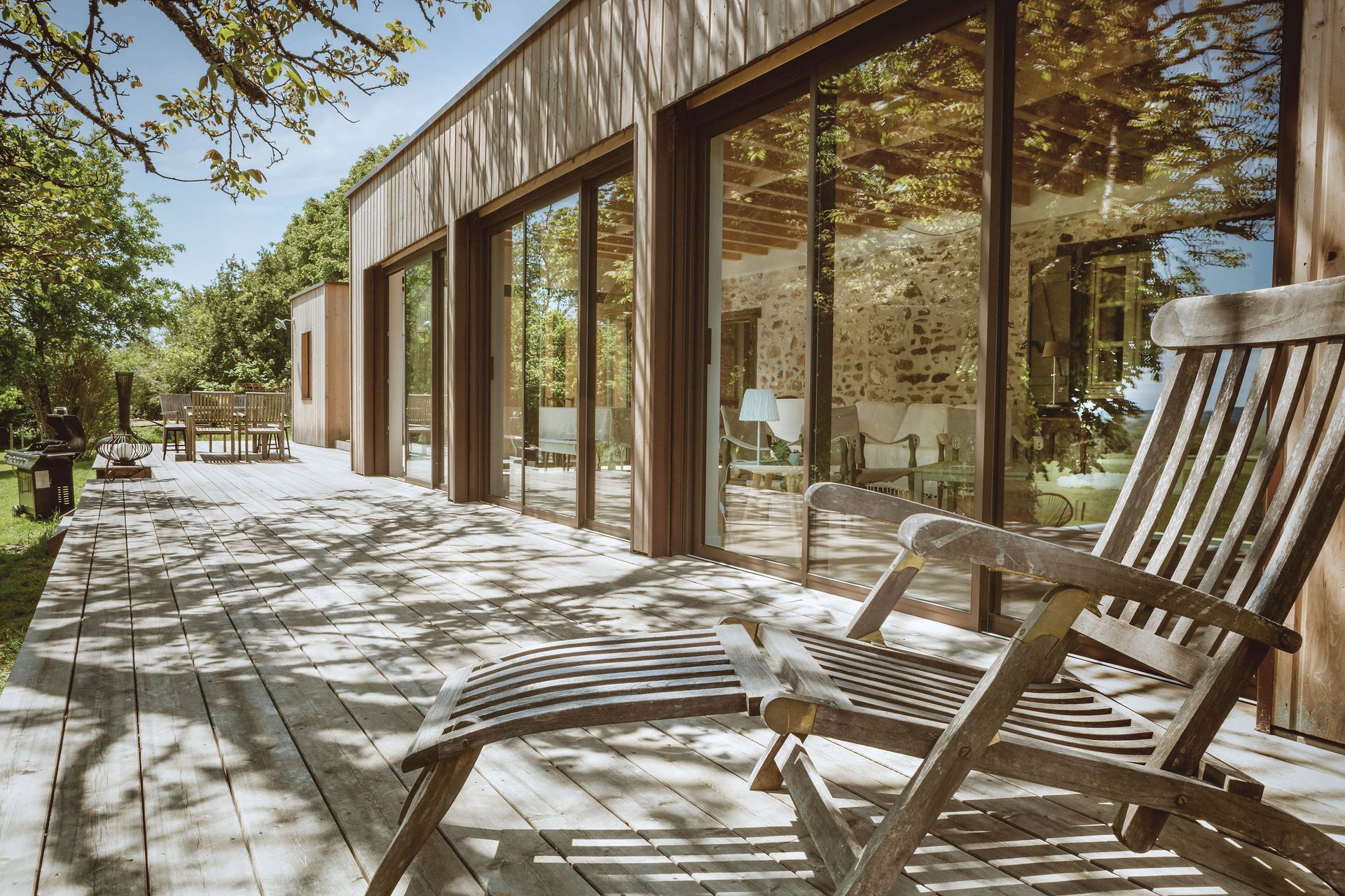 Ses deux terrasses en bois, à l’abri de tout regard et directement en prise avec le jardin, invitent au calme et au repos.
