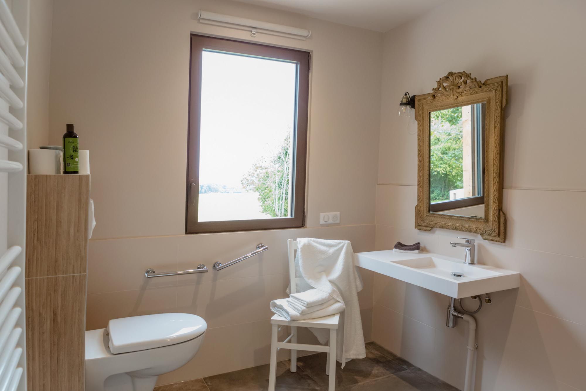 Le rez-de-chaussée du gîte est conçu pour accueillir les personnes à mobilité réduite ou en situation de handicap sensoriel, et ce, en plus d'une chambre double, une salle de bain et des toilettes adaptées. Un parking dédié et une rampe permettent un accès facilité à la maison.