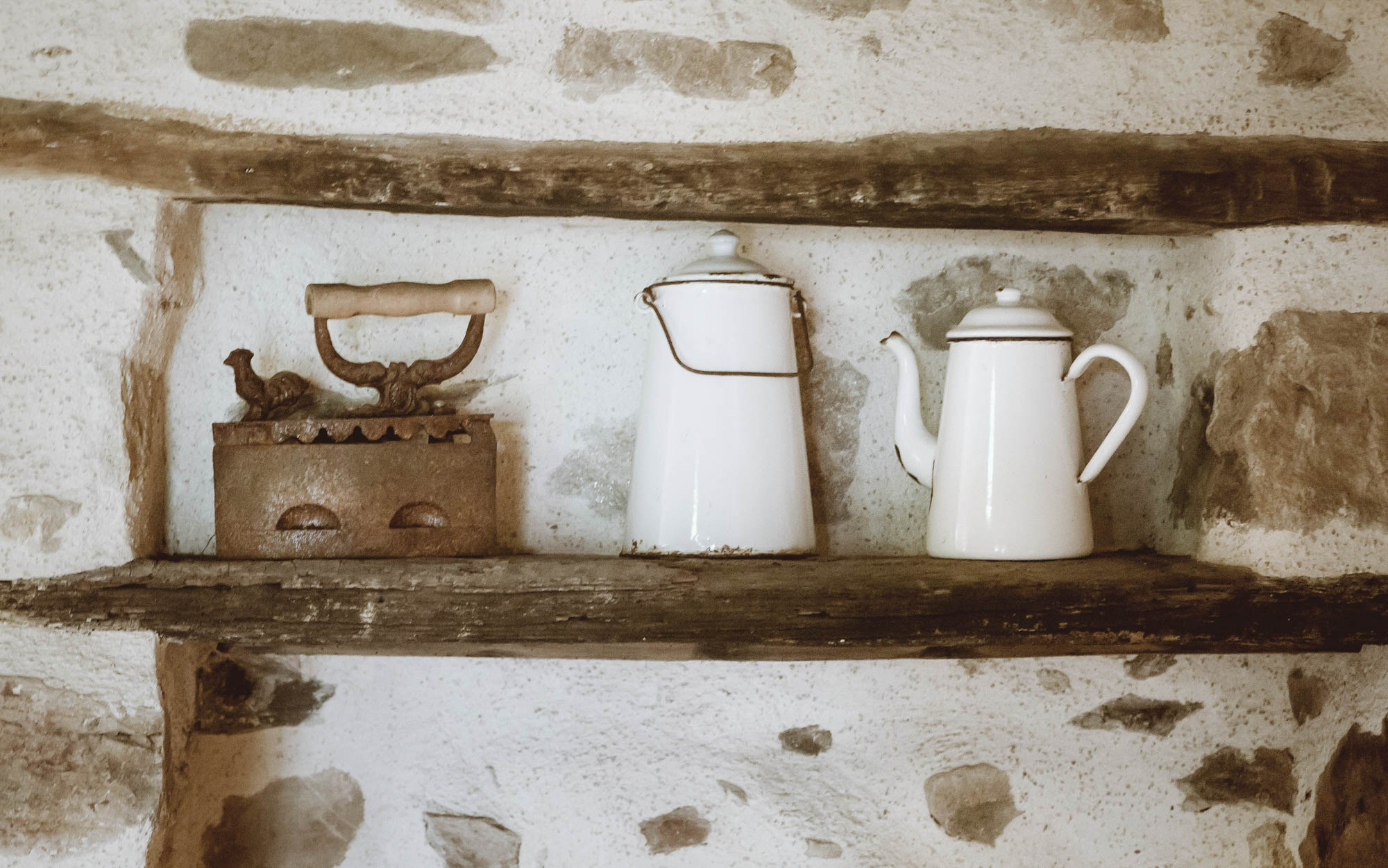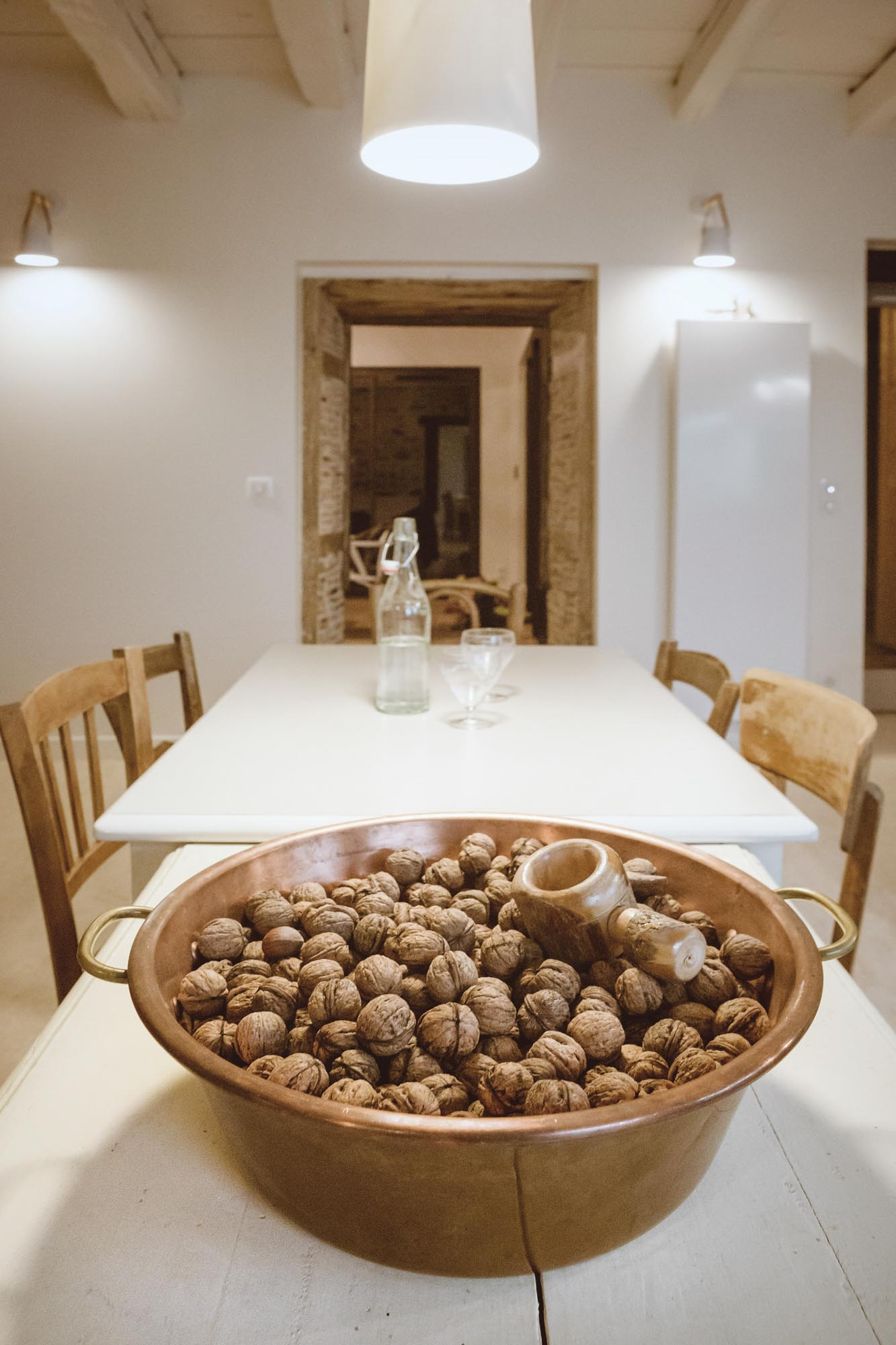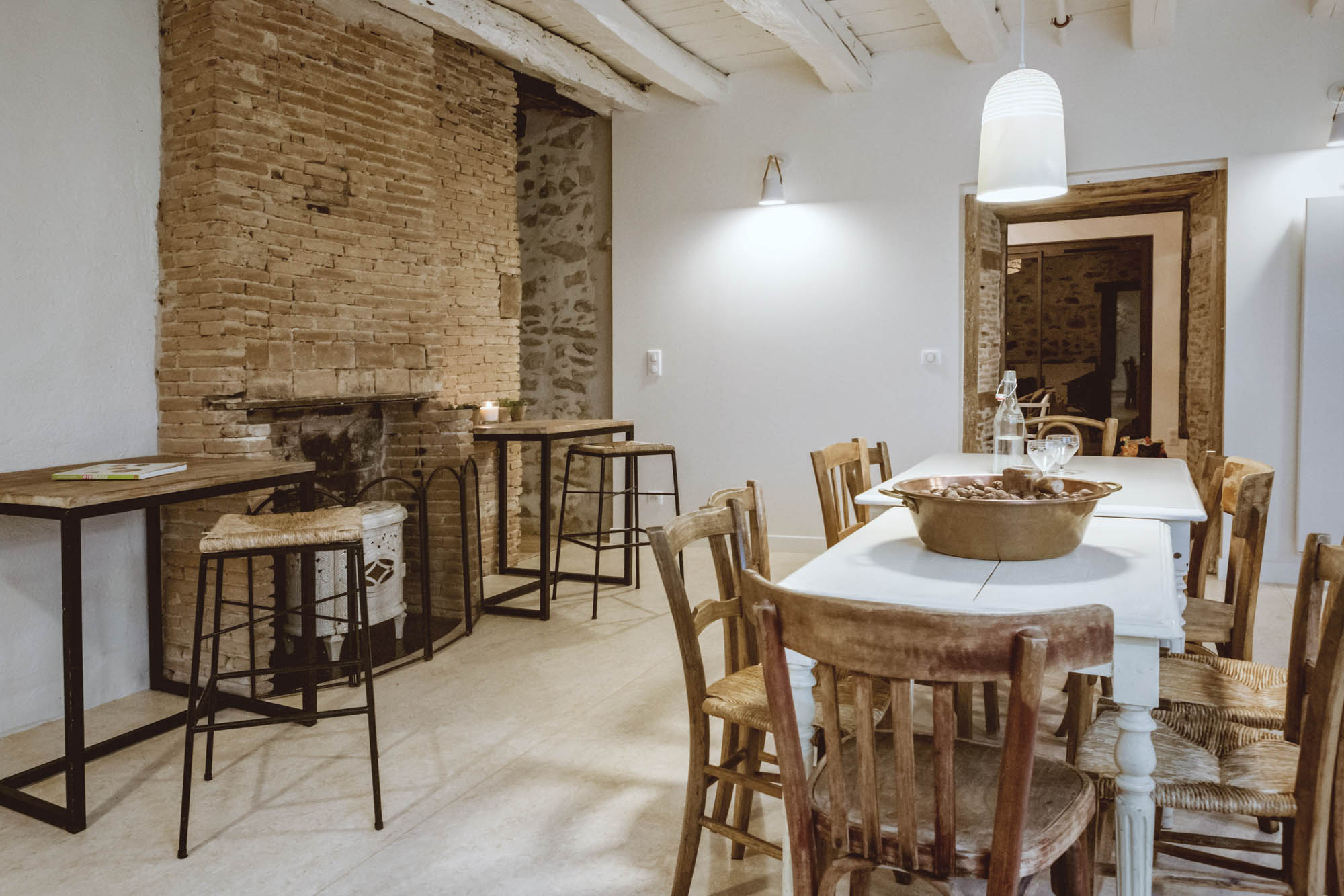 L’entrée s’ouvre sur un séjour où il fait bon se mettre au frais lors de la saison chaude et au coin du poêle l’hiver arrivé. C’est le petit salon des papotages informels et des lectures inspirantes. L’authenticité originelle des lieux a été préservée dans cette pièce qui est la plus ancienne de la maison et aussi son cœur.