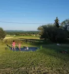 Couchés sur le trampoline, laissez-vous bercer par le spectacle qu'offrent les étoiles les nuits d'été et profitez de la piscine auto-portée de 4,5m de diamètre la journée, aux heures chaudes.